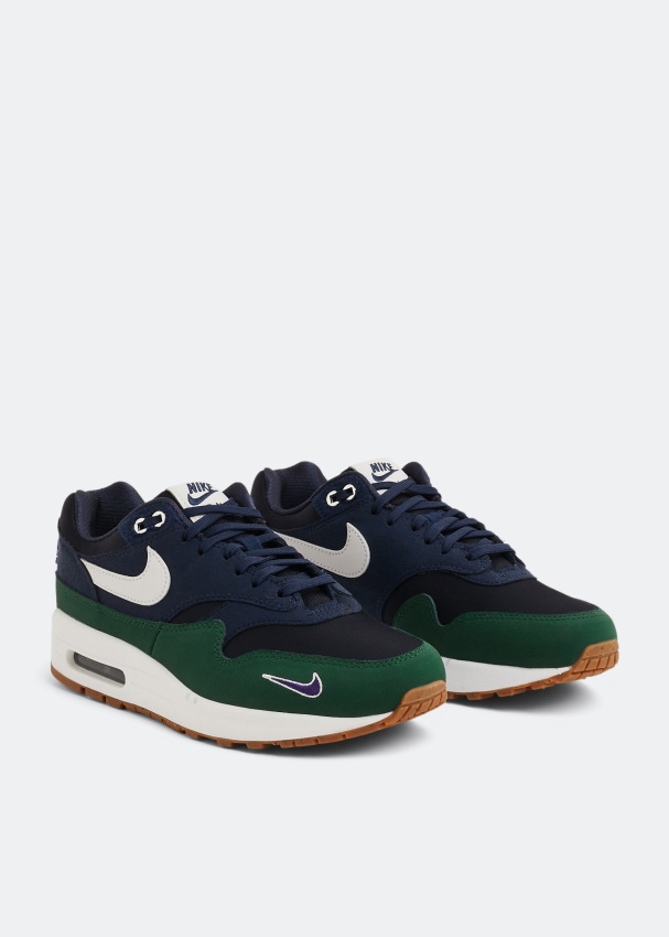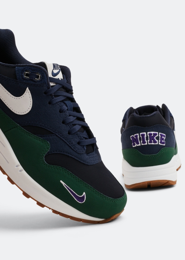 يُطرح سنيكرز إير ماكس 1 جورجي جرين من نايك بخامات من الشمواه والنايلون بألوان مختلفة مع لمسات مطرزة ونعل خارجي مطاطي وتوسيد أفضل وواقي كلاسيكي بنمط مموج ليُكمل أناقة هذا الحذاء المستوحى من الفينتاج.