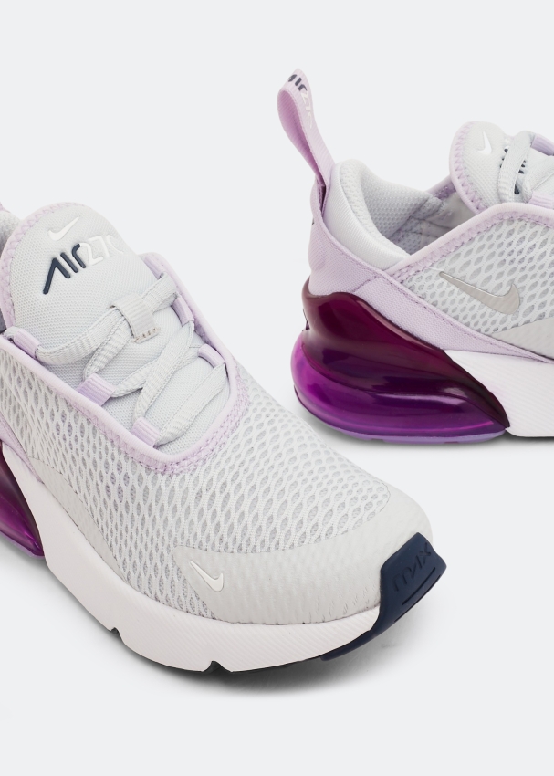 امنحوا فتاتكم الراحة المثالية طوال اليوم مع هذا السنيكرز خفيف الوزن من نايك. يستند على وحدة "إير 270" ضخمة ويتميز بجزء علوي من نسيج مسامي، نعل خارجي مطاطي للثبات، شريط سحب لارتداء وخلع الحذاء بسهولة وتوسيد رغوي شفاف.