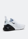 سيوفر سنيكرز إير ماكس 270 من النايك الراحة المثالية لصغاركم طوال اليوم بتصميمه الذي يستند على وحدة "إير 270" كبيرة. يتميز الحذاء بجزء علوي من نسيج مسامي مع نعل خارجي مطاطي للثبات، شريط سحب خلفي لارتداء وخلع الحذاء بسهولة وتوسيد رغوي شفاف.