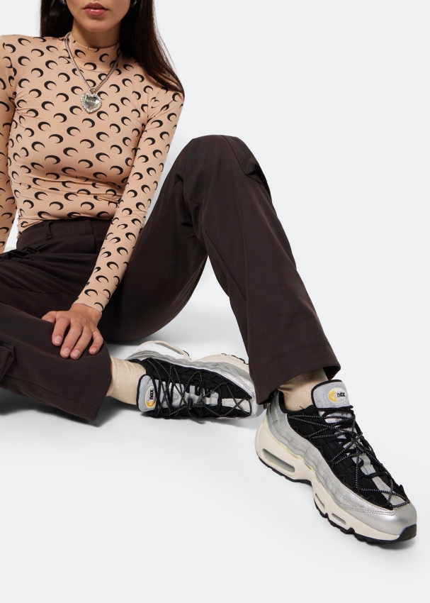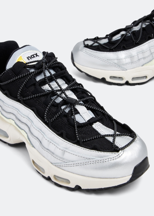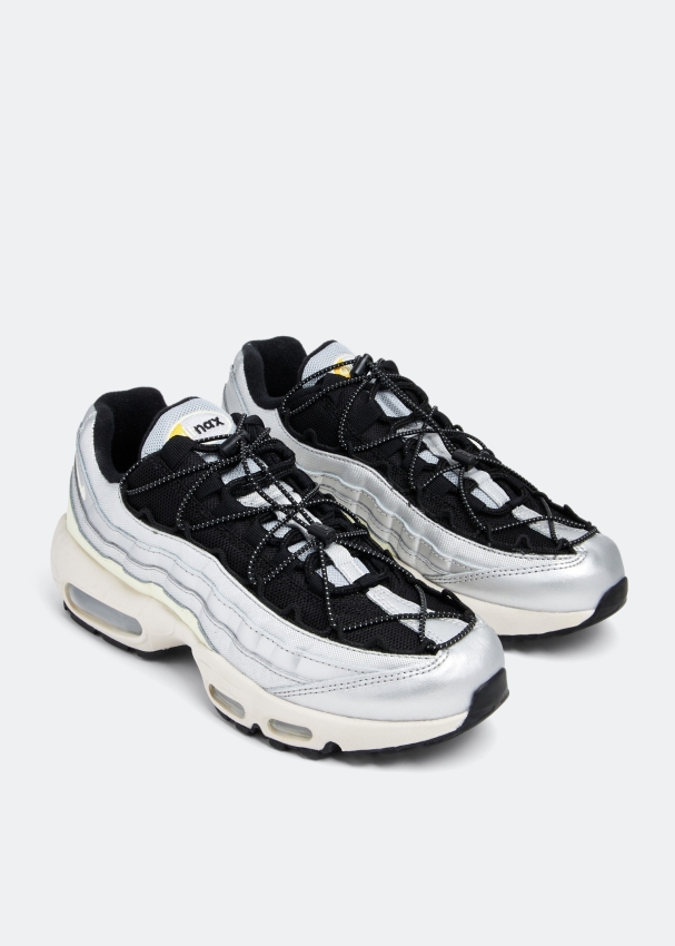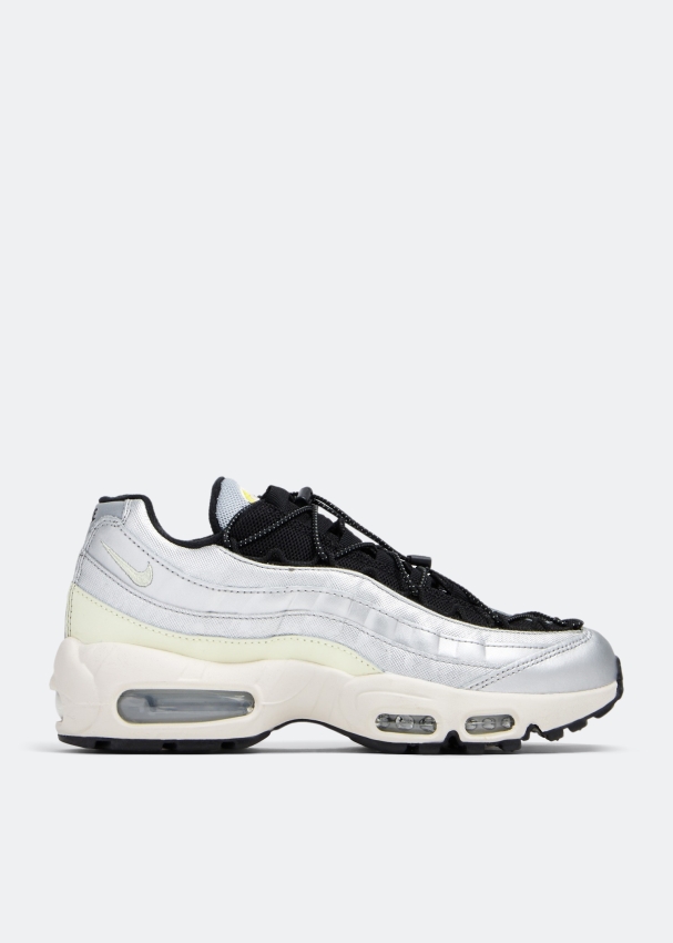 يأتي أحدث إصدار لسنيكرز إير ماكس 95 من نايك بألوان الفضي المعدني، الأسود و"ألباستر". يتميز بجزء علوي من النسيج الشبكي والجلد مع تفاصيل عاكسة من مادة "3 إم"، رباط بقفل ضغط للإغلاق ونعل مطاطي بلونين.